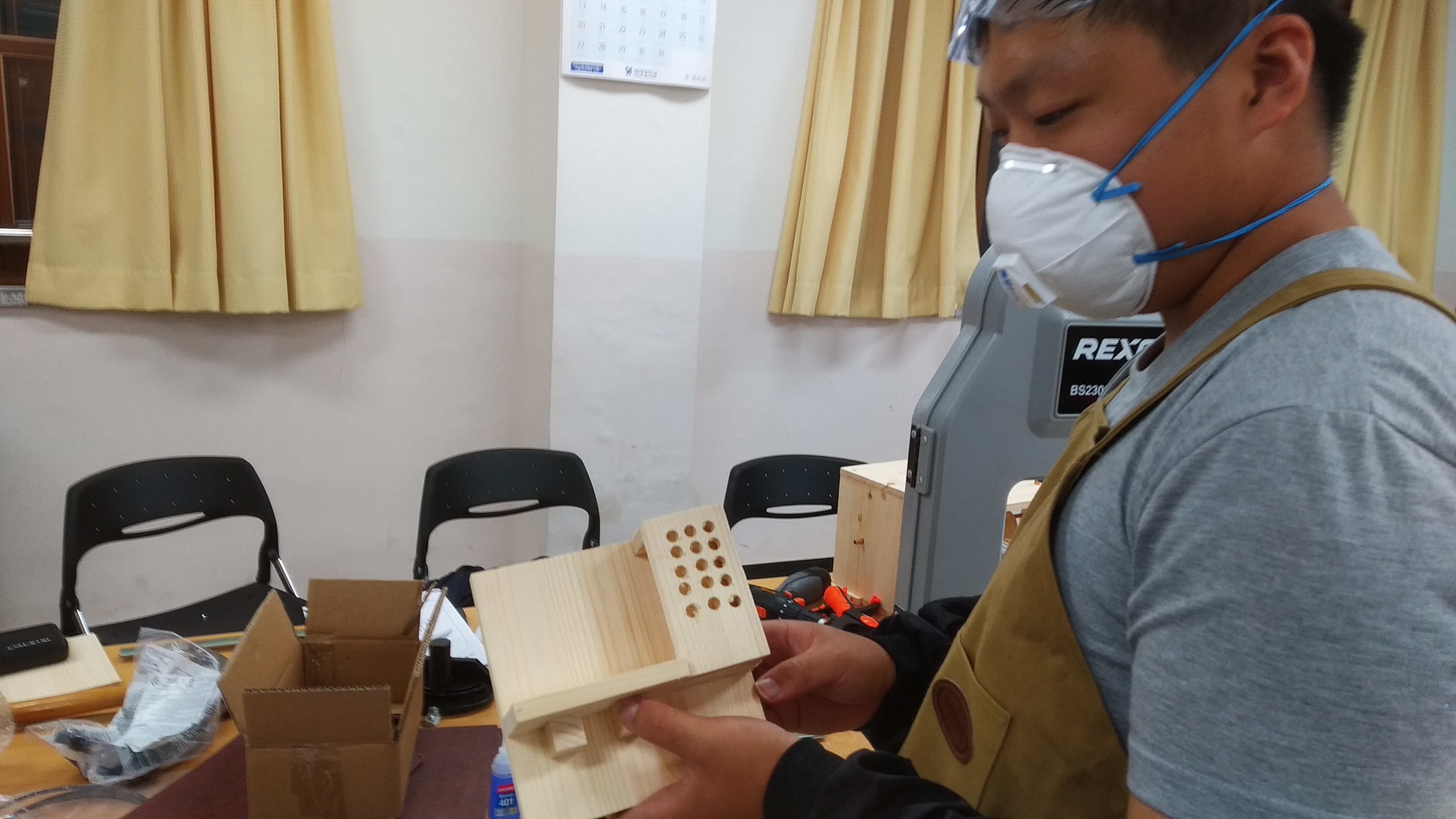 밴드쏘, 드릴프레스 사용법을 알려주니까, 쉬는시간에 휴대폰거치대를 뚝딱 만들었다.