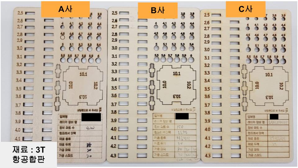 (2)서로 다른 3군데 업체에 시험 가공 의뢰