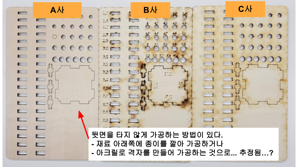 사진 : 3사 레이저커팅 비교(뒷면)