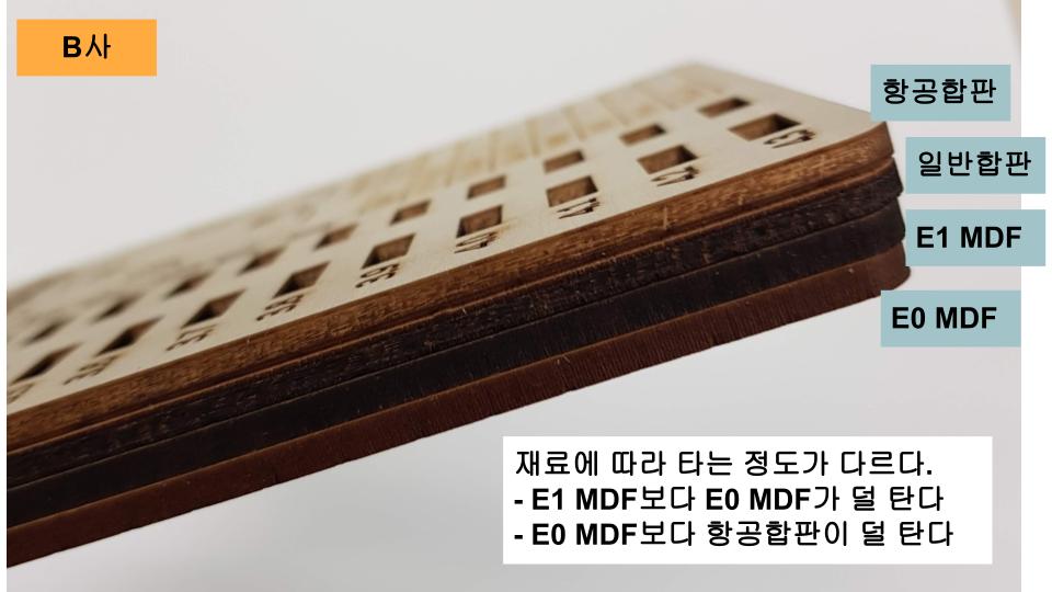 - E0 MDF보다 항공합판이 덜 탄다