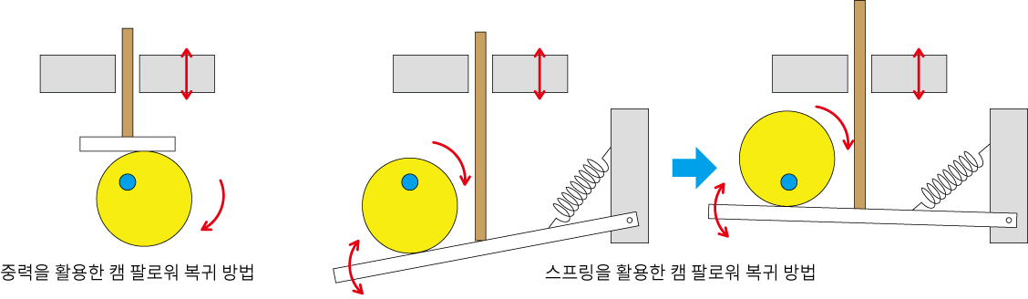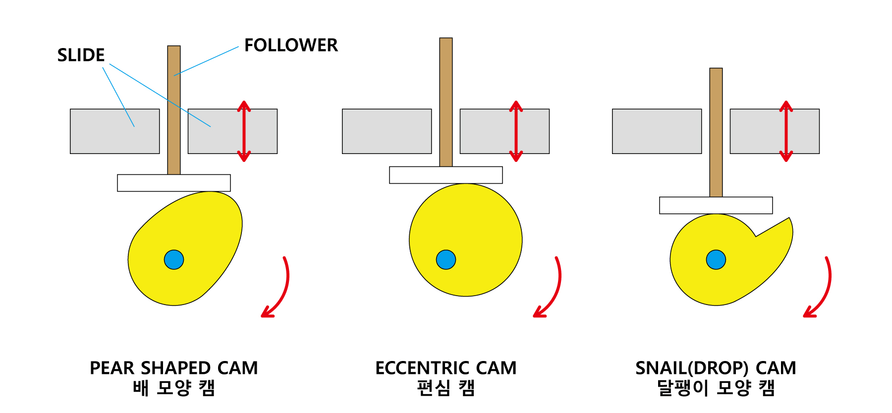 캠(cam) : 회전운동을 상하운동으로 변환하는 기구