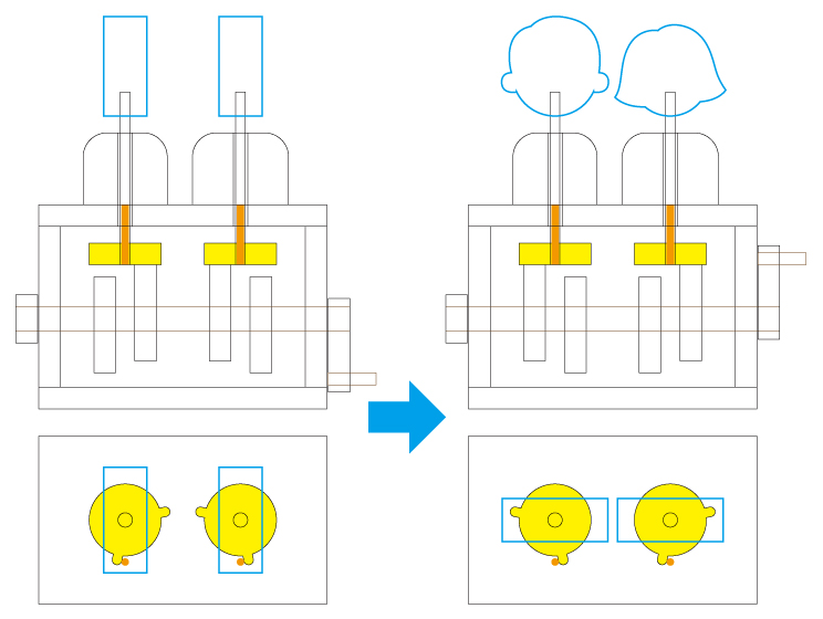 달걀모양캠과 편심캠의 차이를 그림만 봐서는 이해가 어려울 수 있어서 실물 영상으로 비교 해 보겠습니다.