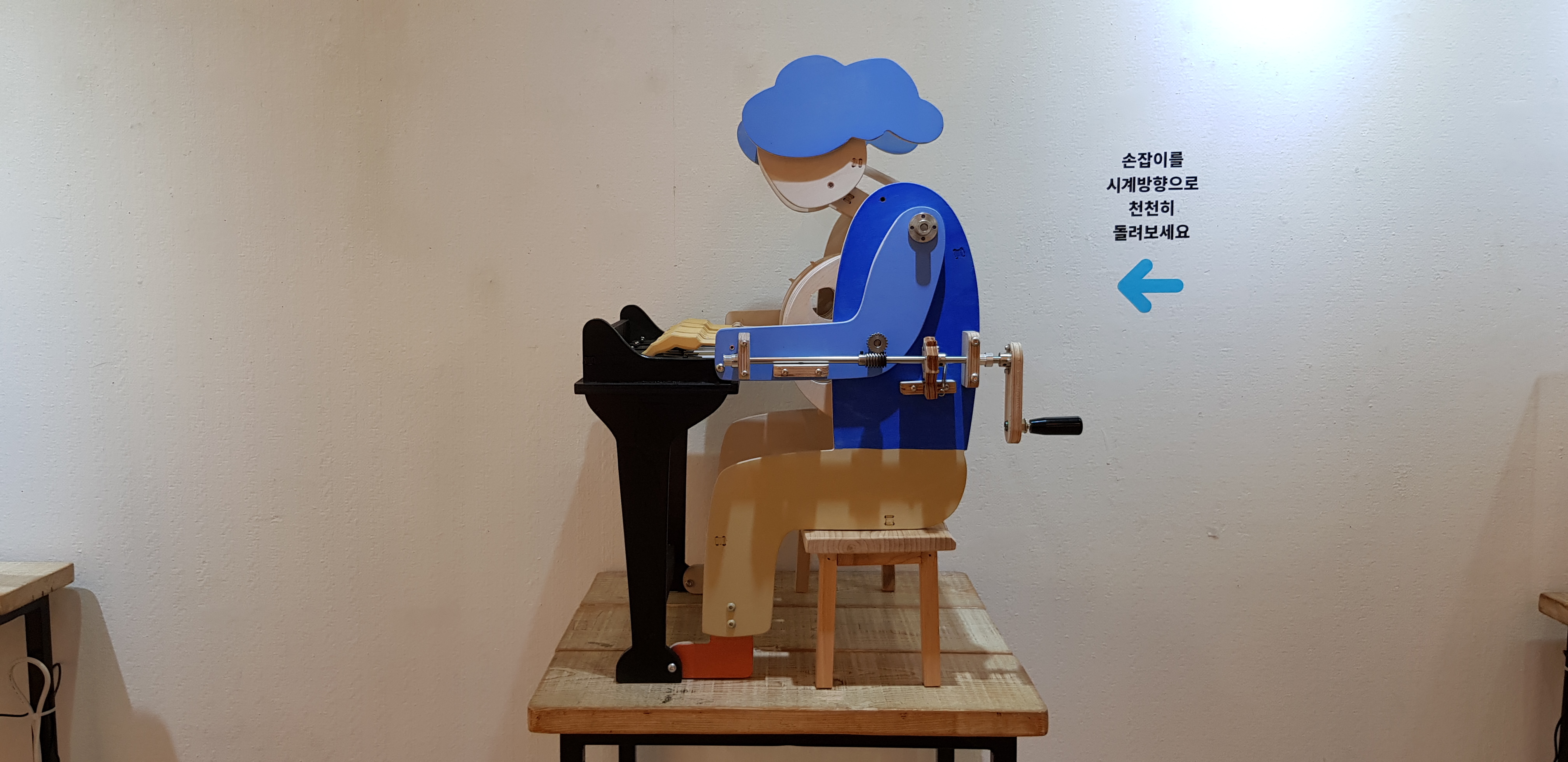 본 작품은 한국과학창의재단의 후원으로 제작하였습니다. 드로잉 메커니즘 테스트 밴드쏘를 이용하여 인형 제작 아크릴물감으로 칠하고, 바니쉬로 마감